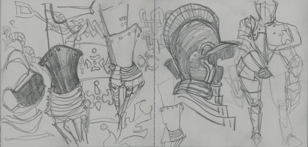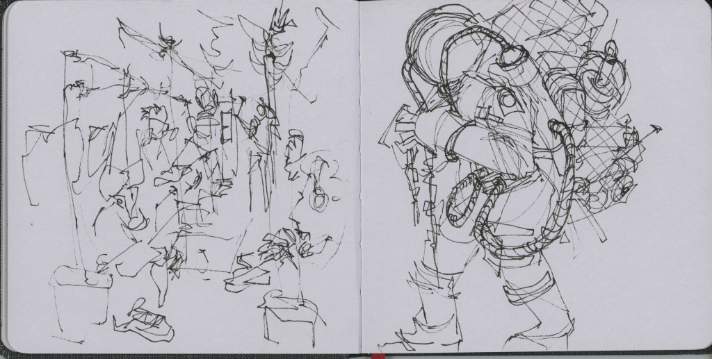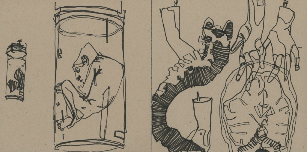 Sketchbook research from Real Bodies in Flint, MI (2023)