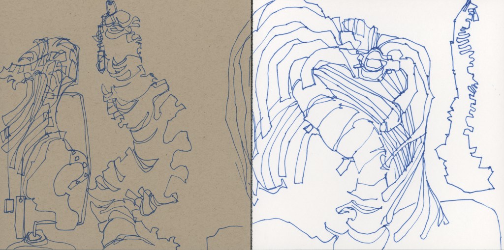 Observational drawings and studies from grey sketchbooks (2023)